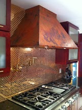 Positioned over a cooktop or range, these draw air upward and through a filter by the fan. This design offers the greatest variety of styles. Models that are built into the cabinetry to chimney style hoods, which can make unlimited design possibilities. Rustic Sinks has a selection of beautiful hand made copper range hoods that include the insert liner (internal motor, blower fan and filter).