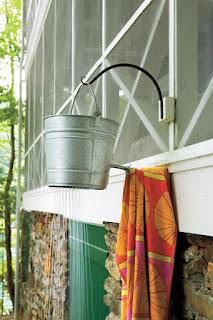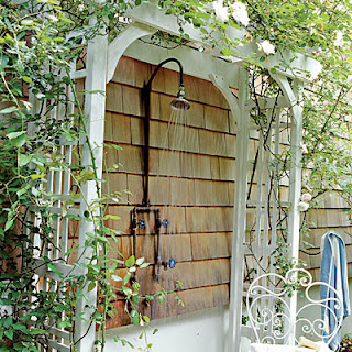 Adding a outdoor shower helps cool off in style while leaving the outdoors, well, just there outdoors. Sand and dirt never comes inside. First, you will want to define your space. Attaching the plumbing to a wall on the backside of a washroom, laundry, or bathroom will make it easier. You can use simple treated wood walls or leave it open. The key is to use fixtures and materials that can survive the weather and sun.