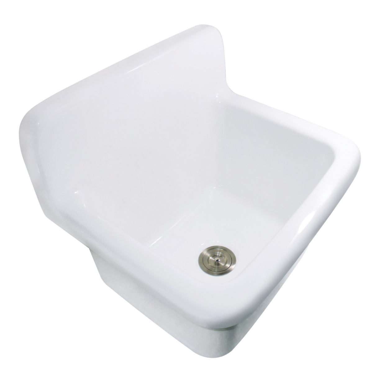 New! Make a bold statement with this Persepolis Galley collection. Design details include a backsplash and rolled-style basin lip making this sink a versatile piece perfectly suited to traditional, eclectic, industrial, or utilitarian design. The heavy-duty ceramic material makes this sink ideal for use in any kitchen, laundry room, or mud room, even for large households ready to put it to heavy daily use. This sink is glazed glossy white to ensure a refined look that lasts and will be easy to clean and maintain. This model features a standard 3-1/2″ kitchen sink drain opening diameter. Please note, customers wishing to purchase an upgraded finish-matched drain for this sink will need to select one of our extended depth sink drain and strainer assemblies due to the thickness of the basin floor. Overall sink width is 21-13/16″ and front-to-back depth from wall to lip is 17-11/16″ providing a generous workspace to wash dishes, clothes, tools, or even pets! Overall sink height is 19-11/16″ and basin depth is 11-7/16″.