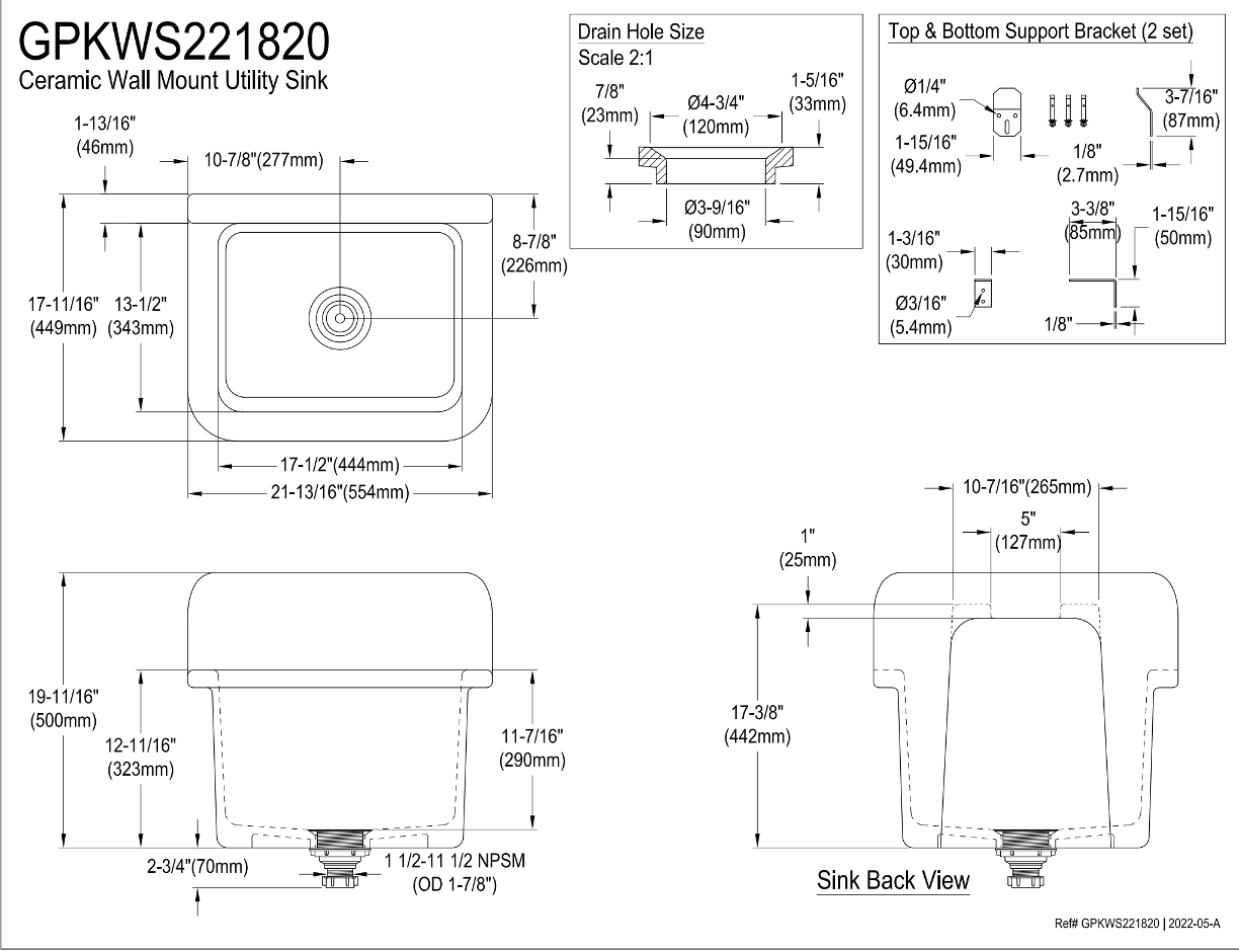 Take your kitchen to the next level of sophistication with our 22" ceramic wall mount sink. Carefully crafted old-fashion ceramic utility design, its unique charm and texture adds a touch of warmth and elegance to any modern space. Transform your kitchen and ask yourself – what kind of statement will you make?