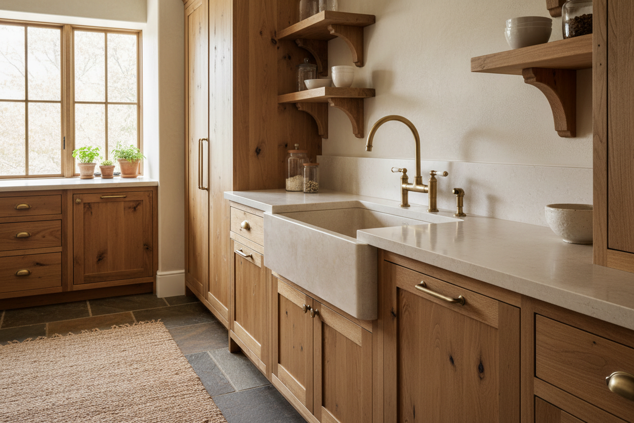- Hand-Carved Floral Apron: Intricate floral relief on the farmhouse front adds artistic dimension and becomes an instant conversation piece