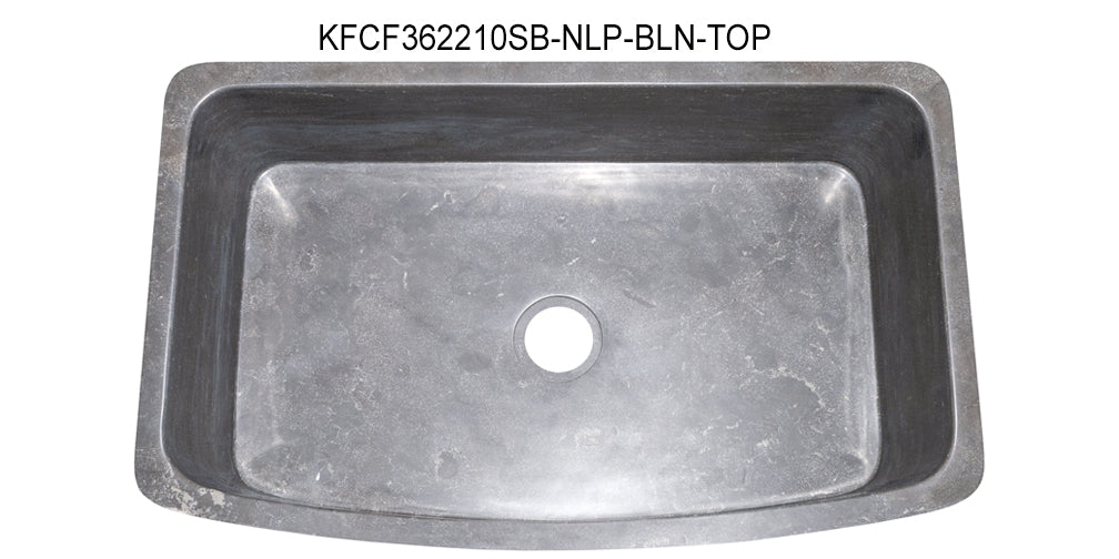 This beautiful limestone provides a lighter shade of black with some small white veins, complementing most modern kitchens. A curved front apron makes it easier to stand against. This is a hard stone with no absorption and requires no maintenance. A sealer/enhancer can be applied if you prefer a darker shade of black. This reversible sink is finished on all sides, so you get to choose which side you like best! Shop for a faucet and drain in polished chrome for a beautiful looking kitchen addition.