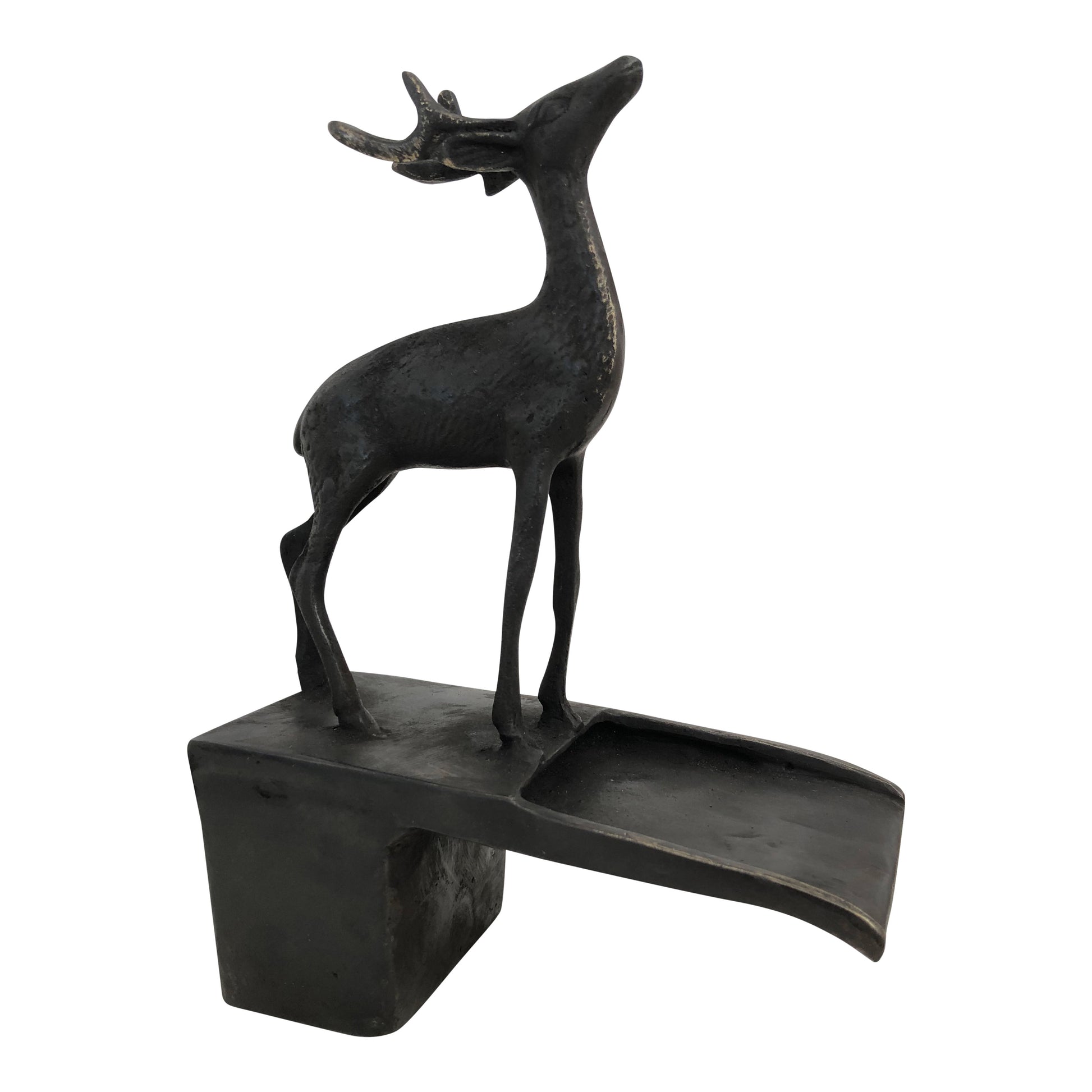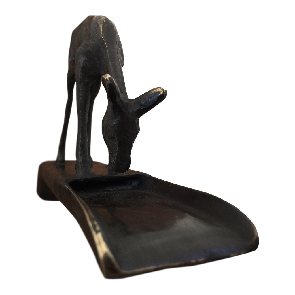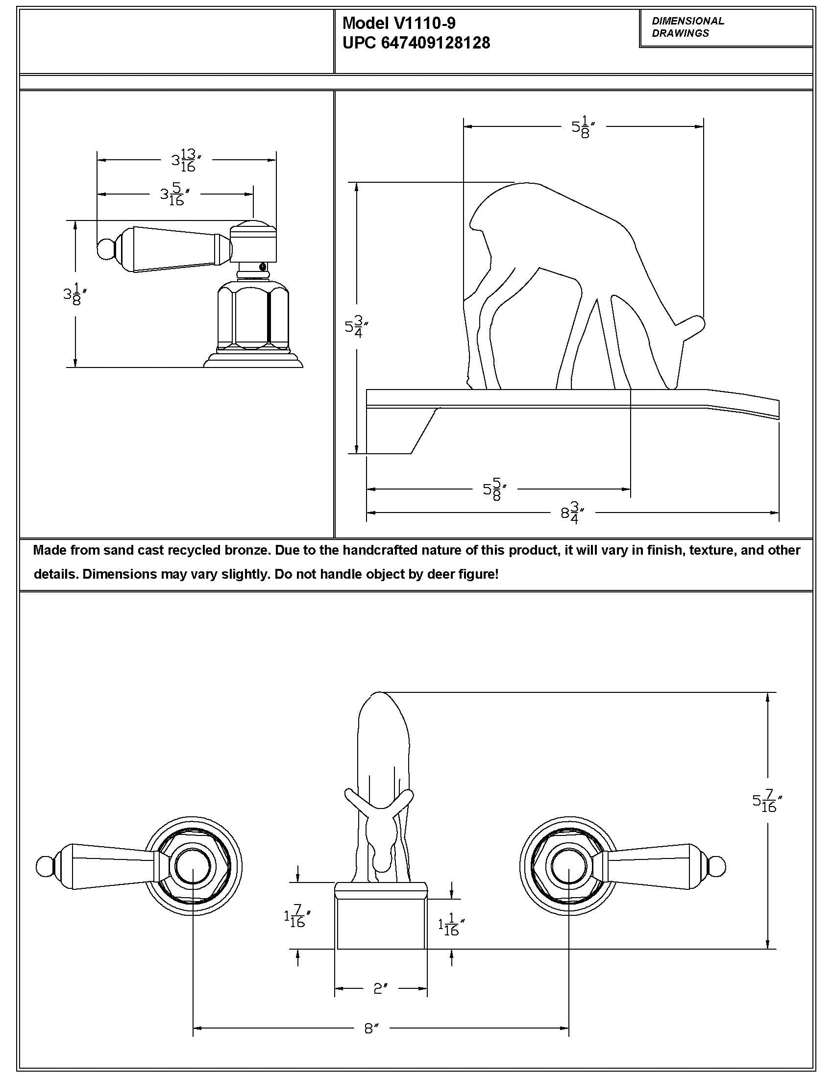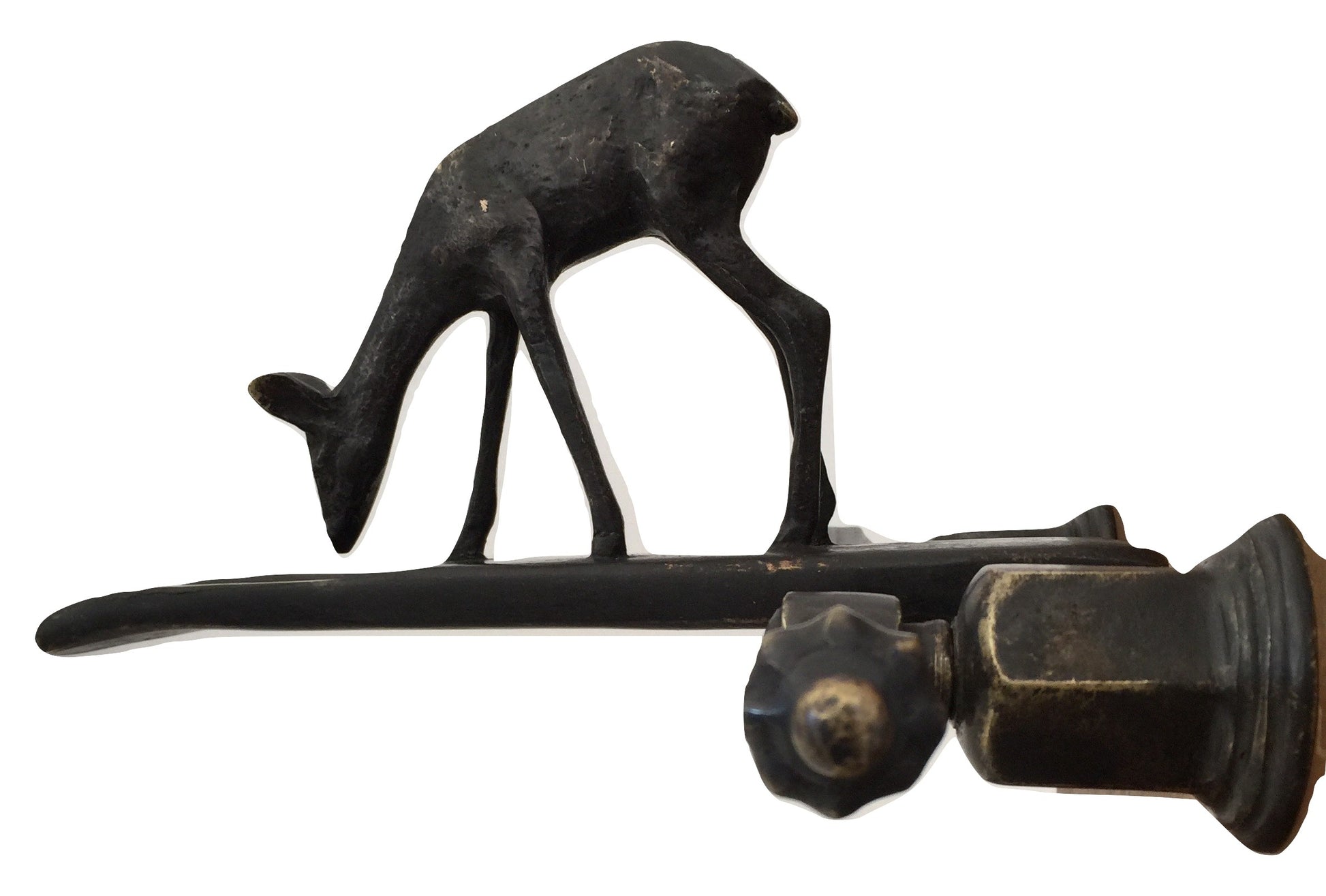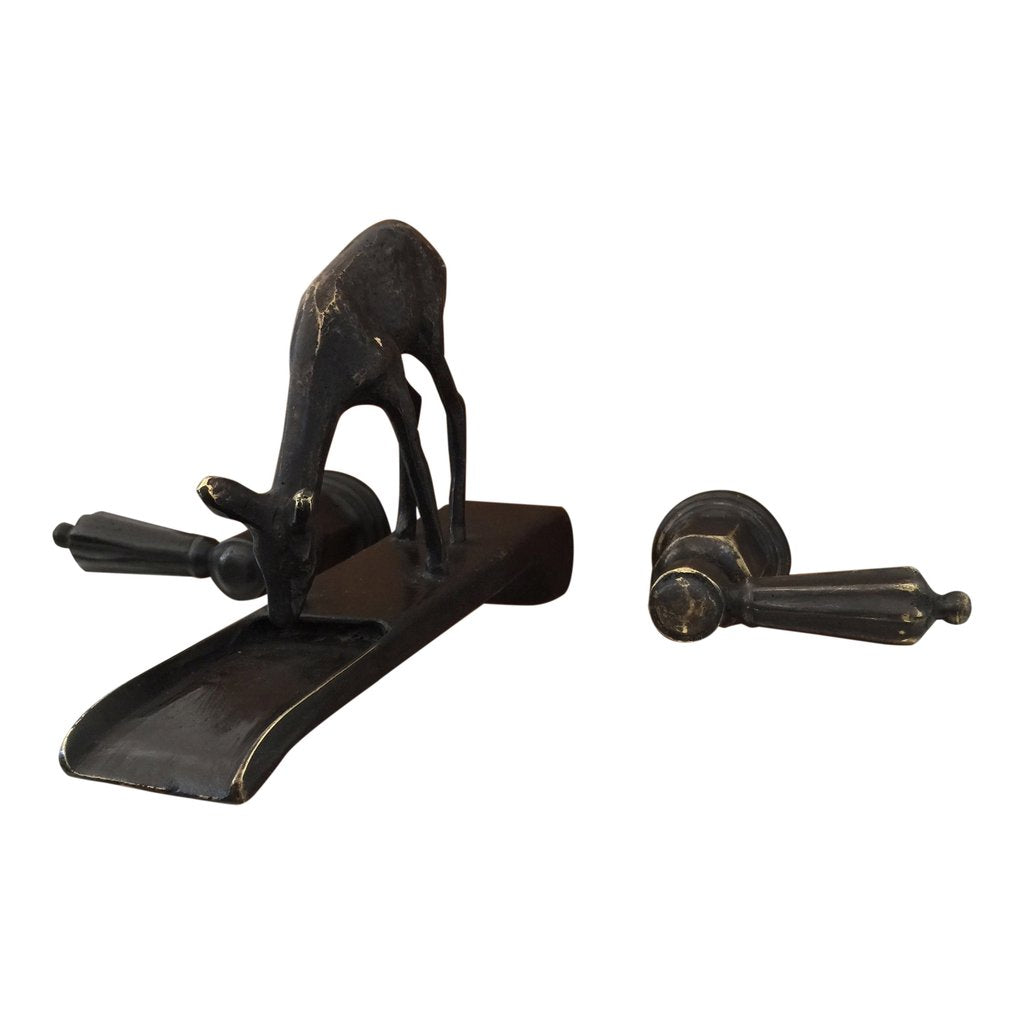 New in Polished Brass also! Rustic faucet with a bronze deer in sand cast bronze. The Artisan hand made faucet shows a deer over the water as it pours over the edge, giving a waterfall effect. Hand rubbed high lighted areas in brass will vary.