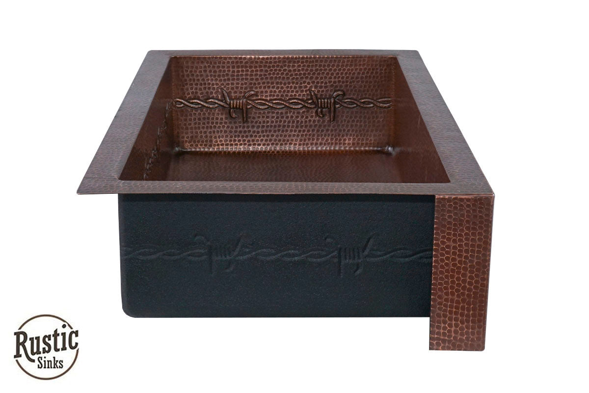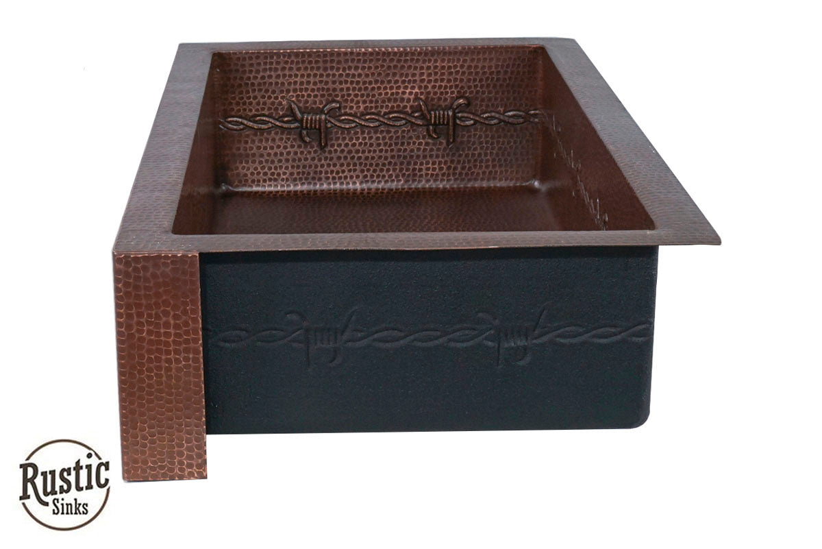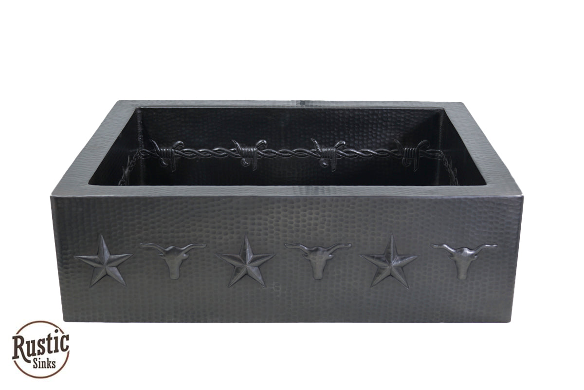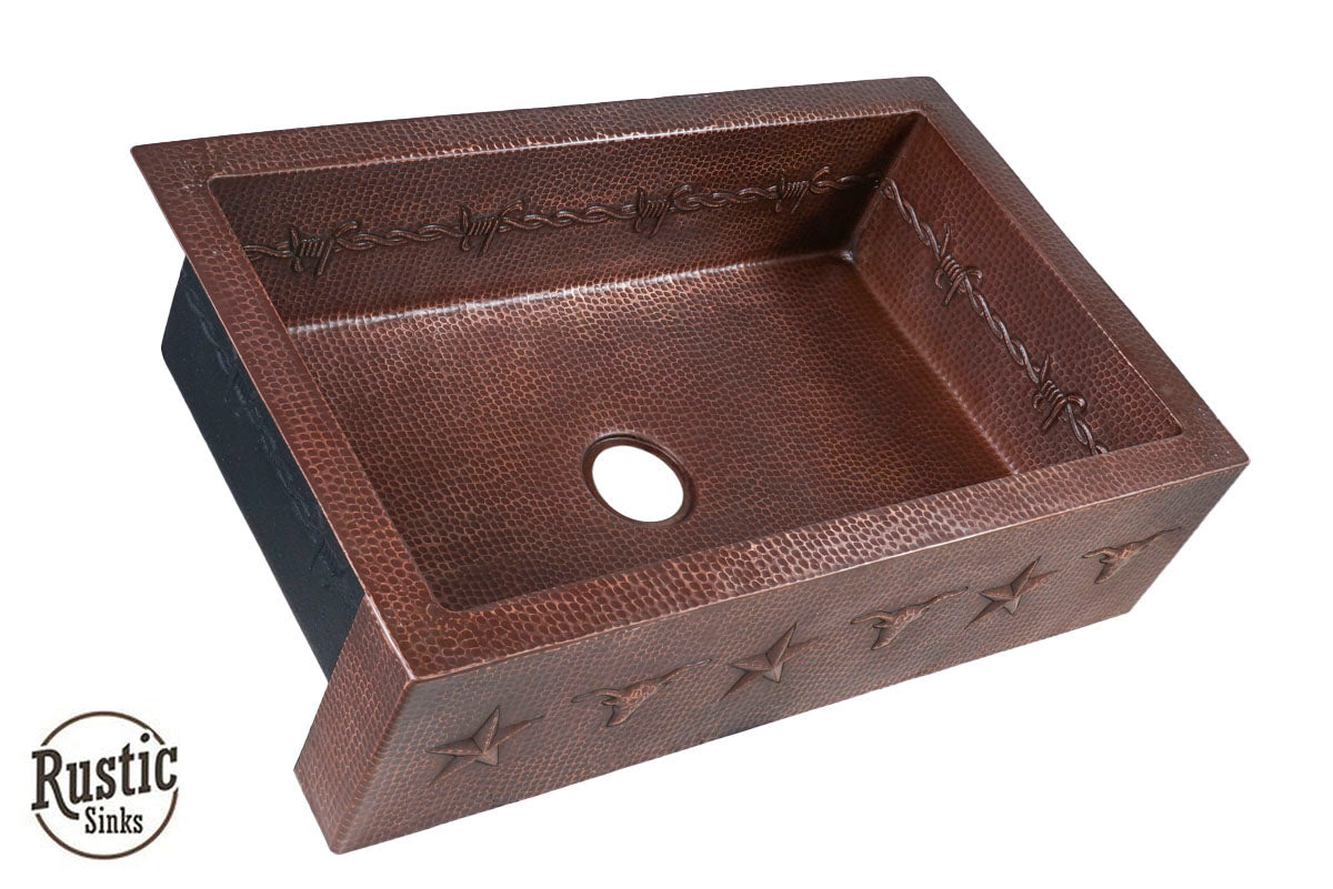 Copper Farmhouse Sink w/Barbwire, Stars & Longhorn