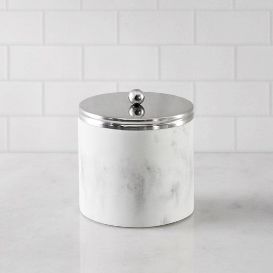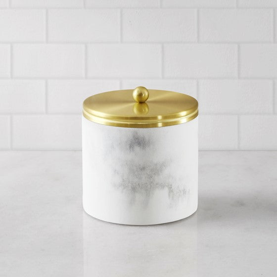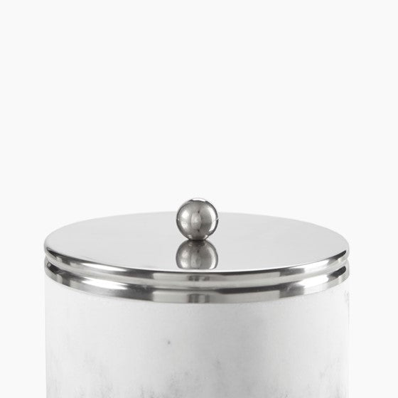 Storage Jar with stainless steel lid and marbled resin body in silver or gold lid.