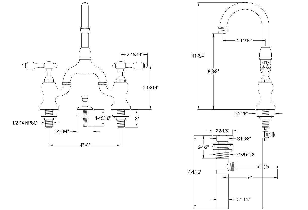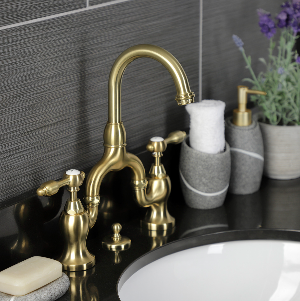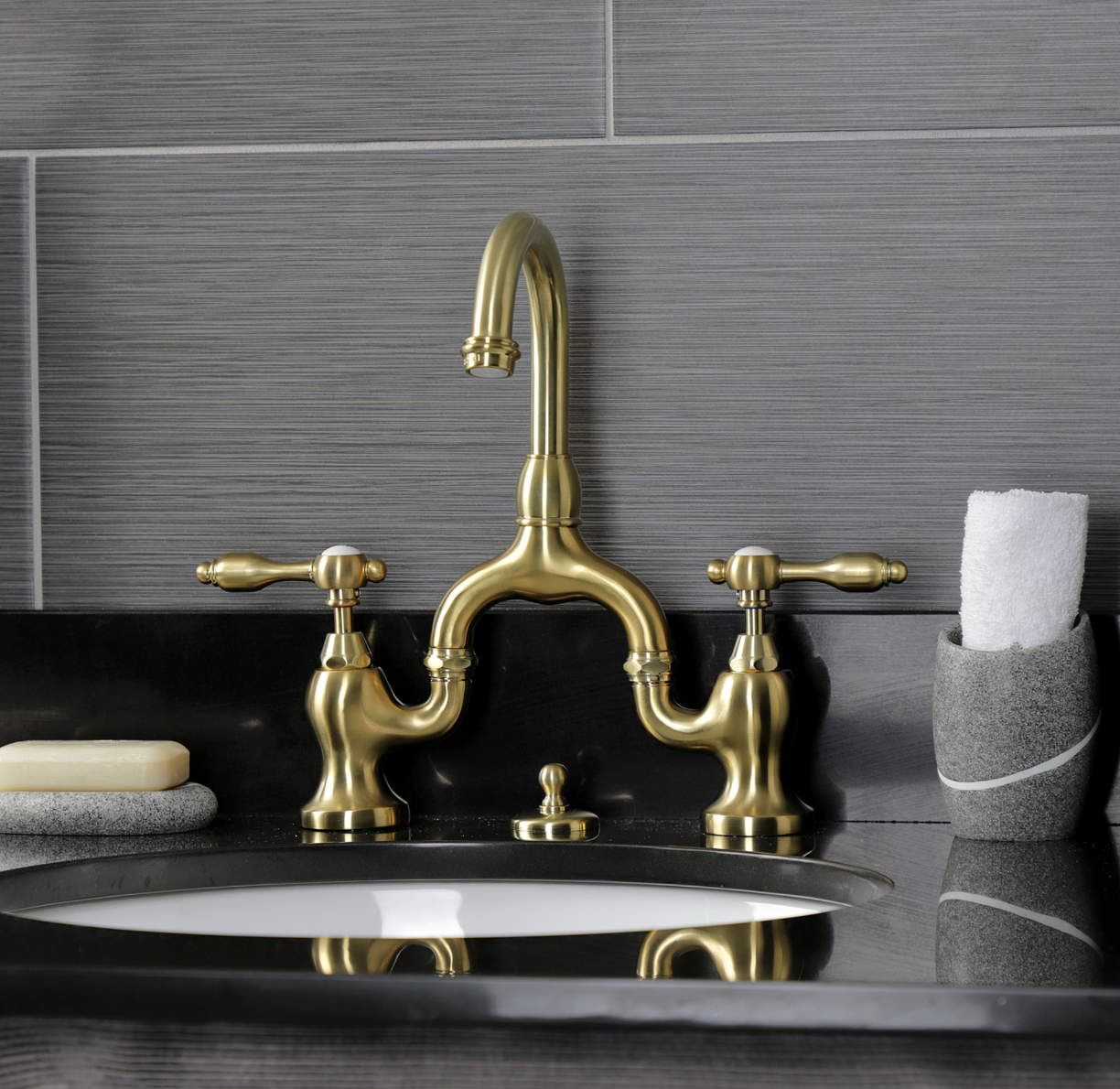 Tudor Two-Handle 3-Hole Deck Mount Bridge Bathroom Faucet
