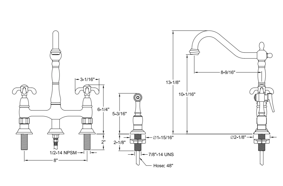 French Country Bridge Kitchen Faucet with Sprayer