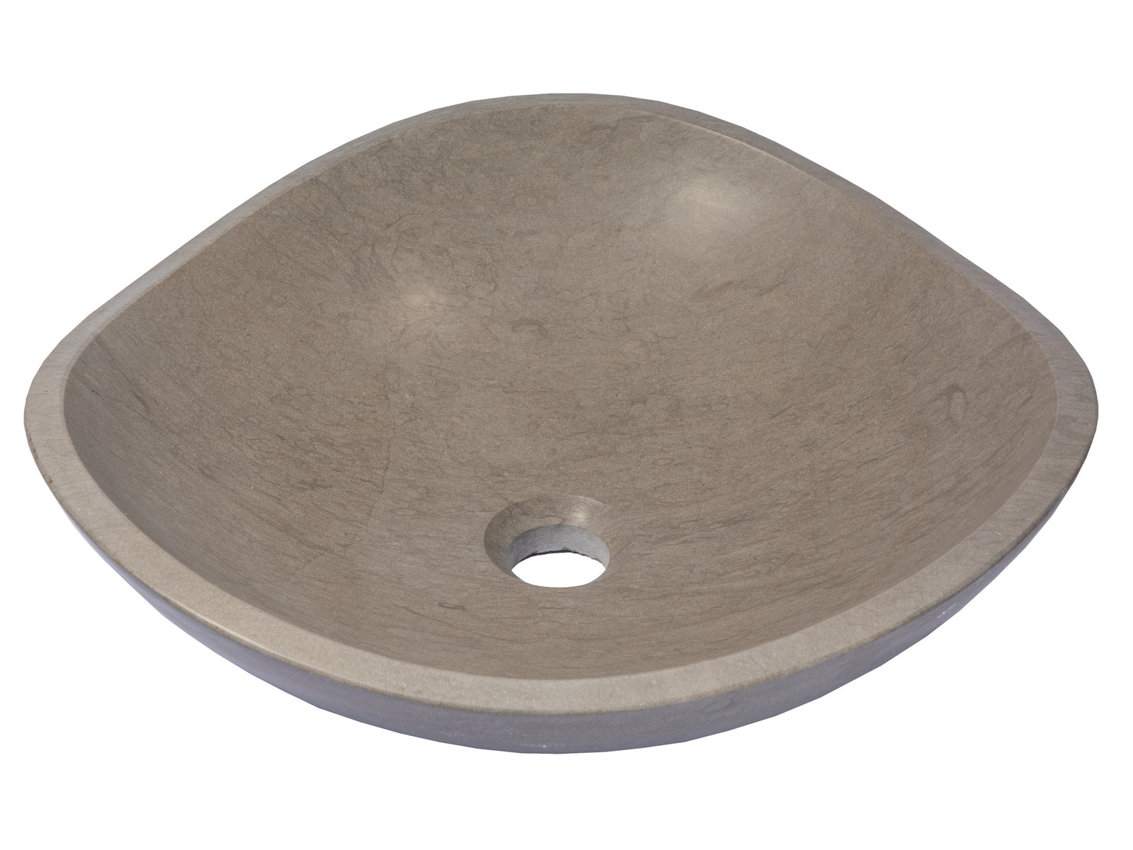 This sink has a unique curved rim with three high points, to give it a seemingly random hand formed look. This sink would make a perfect addition to any modern bathroom, at a price that most home owners can afford. The relatively flat profile of this sink doesn’t allow it to hold much water, but it is perfect for a powder room or light-use-bathroom. We recommend that you also purchase a drain with your stone sink in the same finish of your faucet.