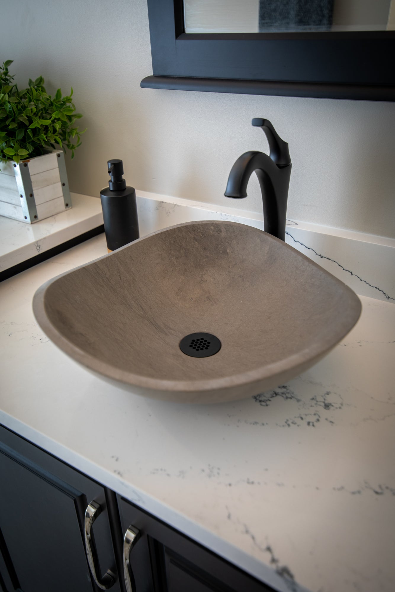 Beautify your bathroom with this unique grey marble freeform vessel sink in honed Molly Grey. Its distinct shape will infuse a note of sophistication and luxury into any space, sure to impress your guests. Richly detailed and luxuriously crafted, this vessel sink is sure to become a timeless centerpiece 🌟 for any space.
