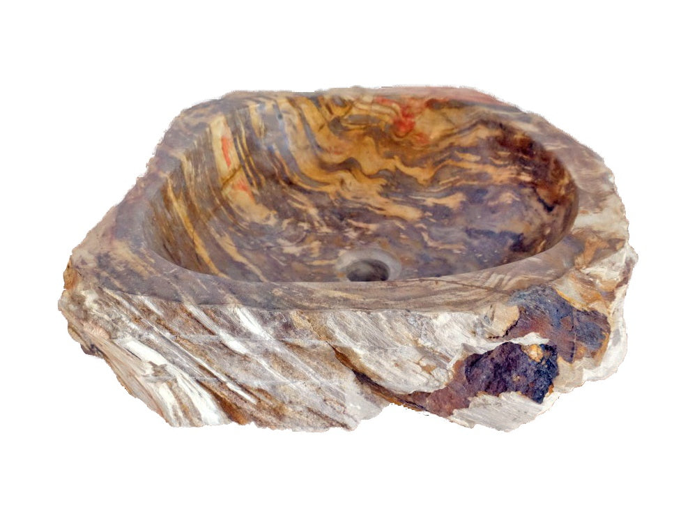 The sink was at one point natural wood, now stone created by nature over thousands of years. The process called fossilization replaces all the organic materials in the wood with minerals keeping the structure of the wood but effectively turning it into stone.