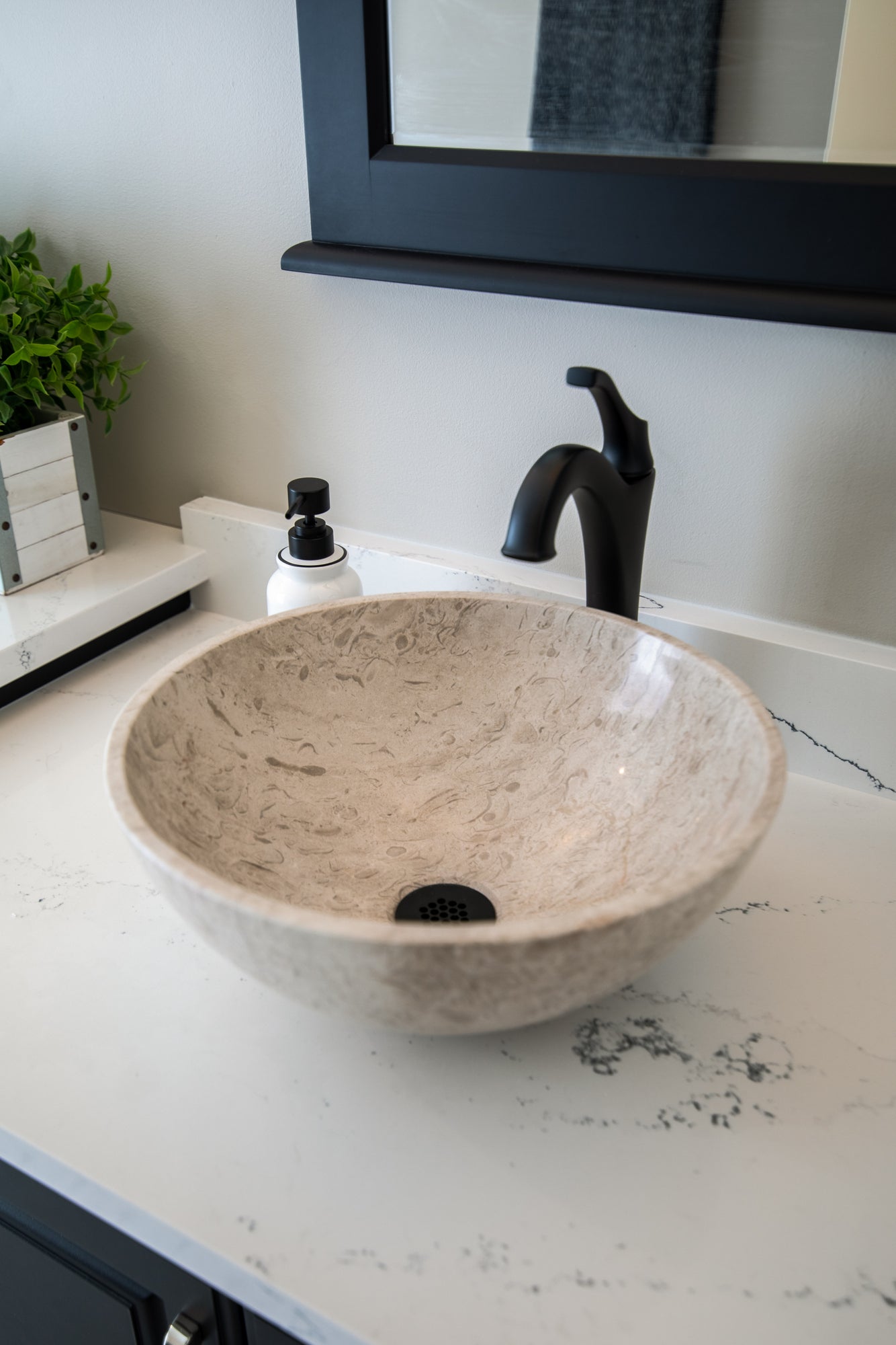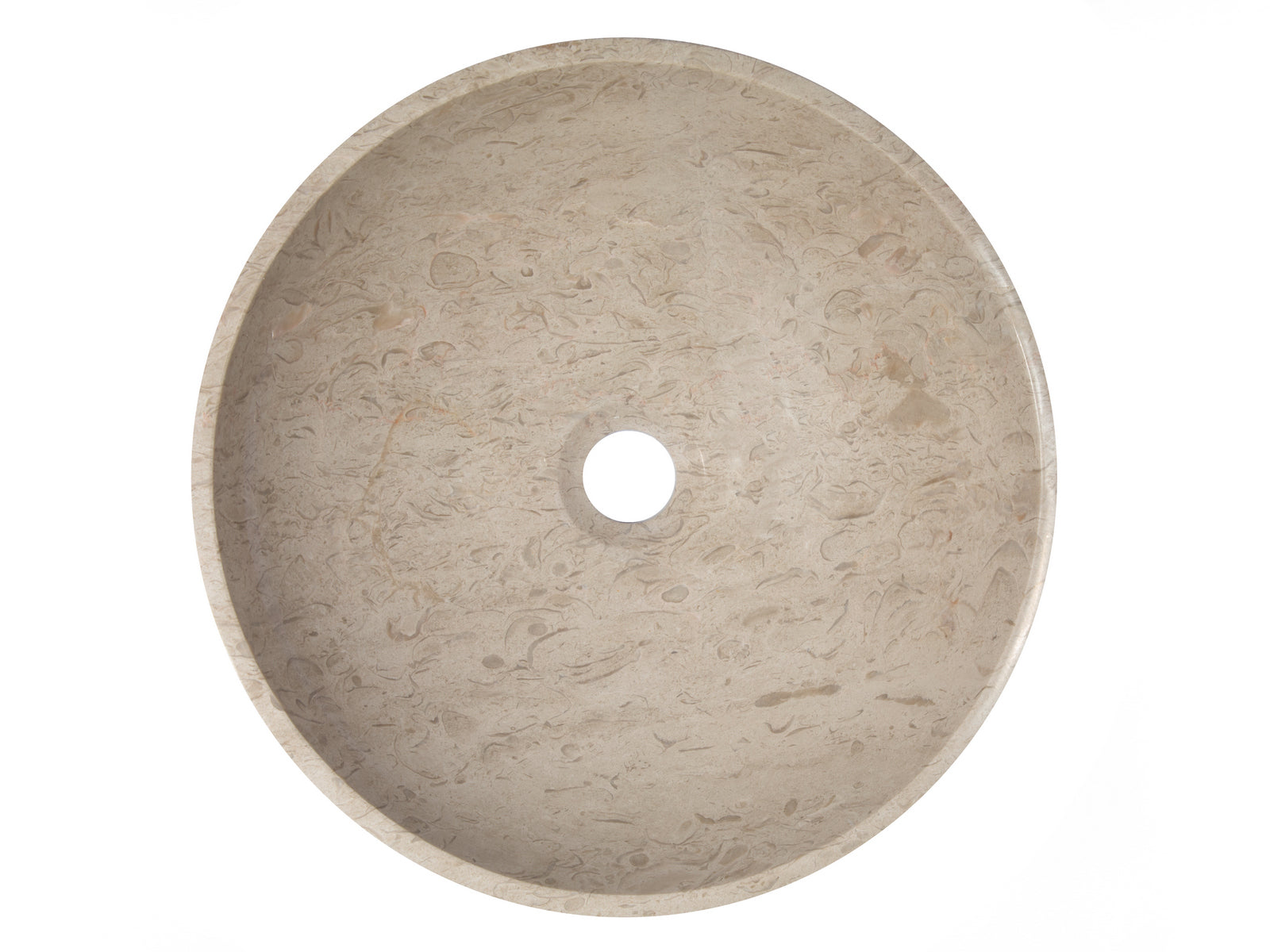 This elegant small round vessel sink bowl brings a sophisticated touch to any bathroom. Crafted with polished penny grey marble, its timeless design is both classic and chic. Upgrade your space with this luxurious sink bowl, and add a touch of modern refinement to your interior.
