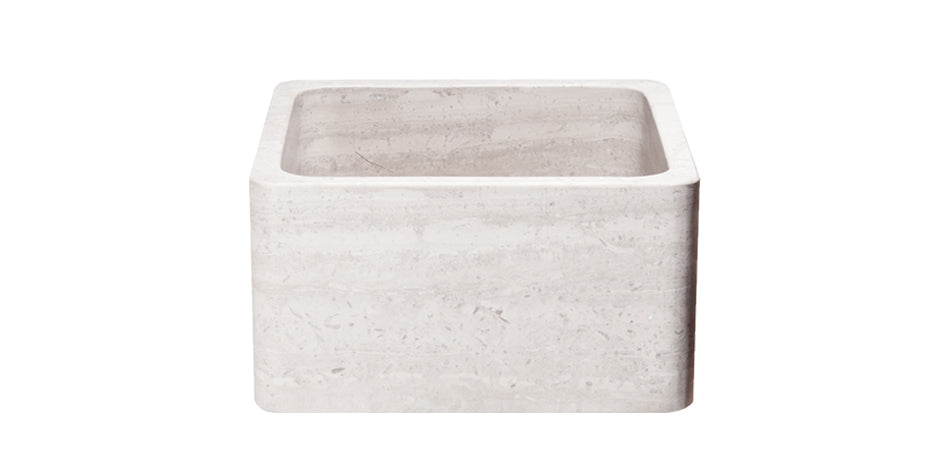 Feel the luxurious look of marble in your kitchen with this unique Stratus Marble Light 17" Apron Bar & Prep Farm Sink. Its light taupe gray hue adds a spark of contrast and elegance to every meal prep. Light gray taupe marble farmhouse bar & prep sink has a straight apron front matches the 33" farmhouse sink also available for purchase. The 17 inch size also will make a great bar sink. Cut to expose the horizontal veining and the stratus color variations of light taupe, beige and gray. You can see the natural gray and brown veining throughout. Rejoice as prepping and cooking takes on a new level of sophistication and style!