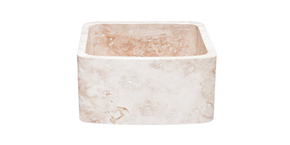 A natural Travertine from Italy which contains alluring waves of veins in varying shades of beige and brown. Unlike most other travertines, this has only small holes which are epoxy filled and rigorously tested to provide many years of maintenance free service. Roma Travertine will naturally vary in both the amount of veins and its brown-beige tones.This sink can also be reversed along with being a undermount.