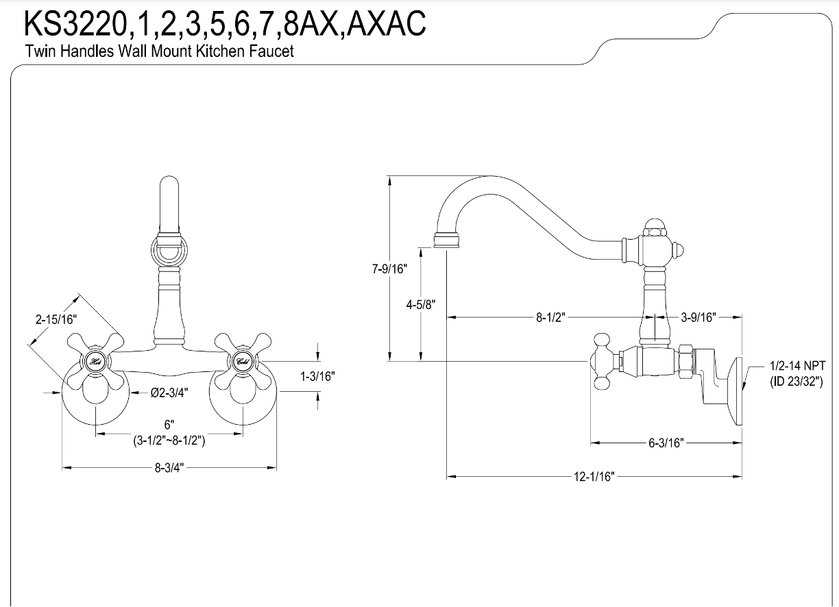 Vintage Wall Mount Kitchen Faucet with Adjustable Centers