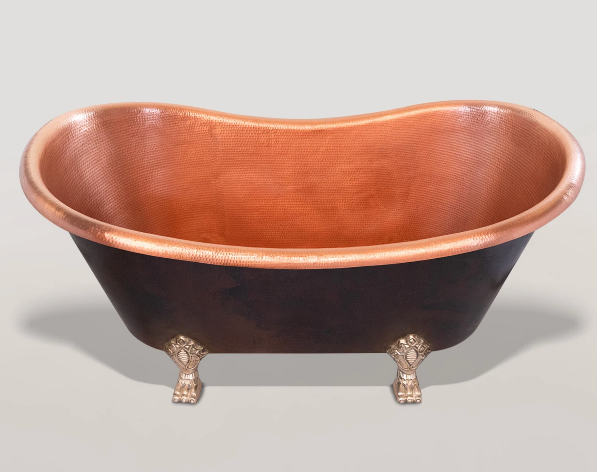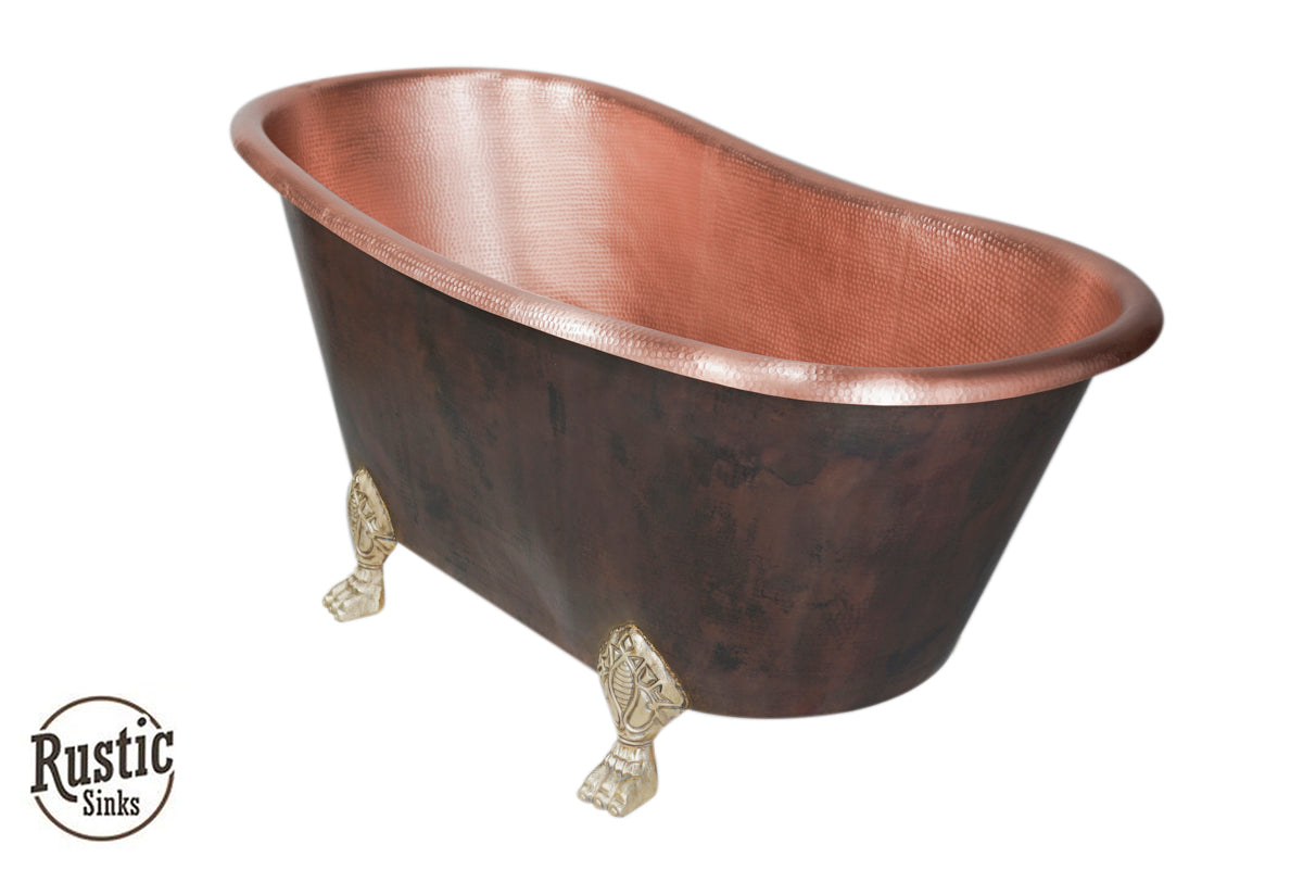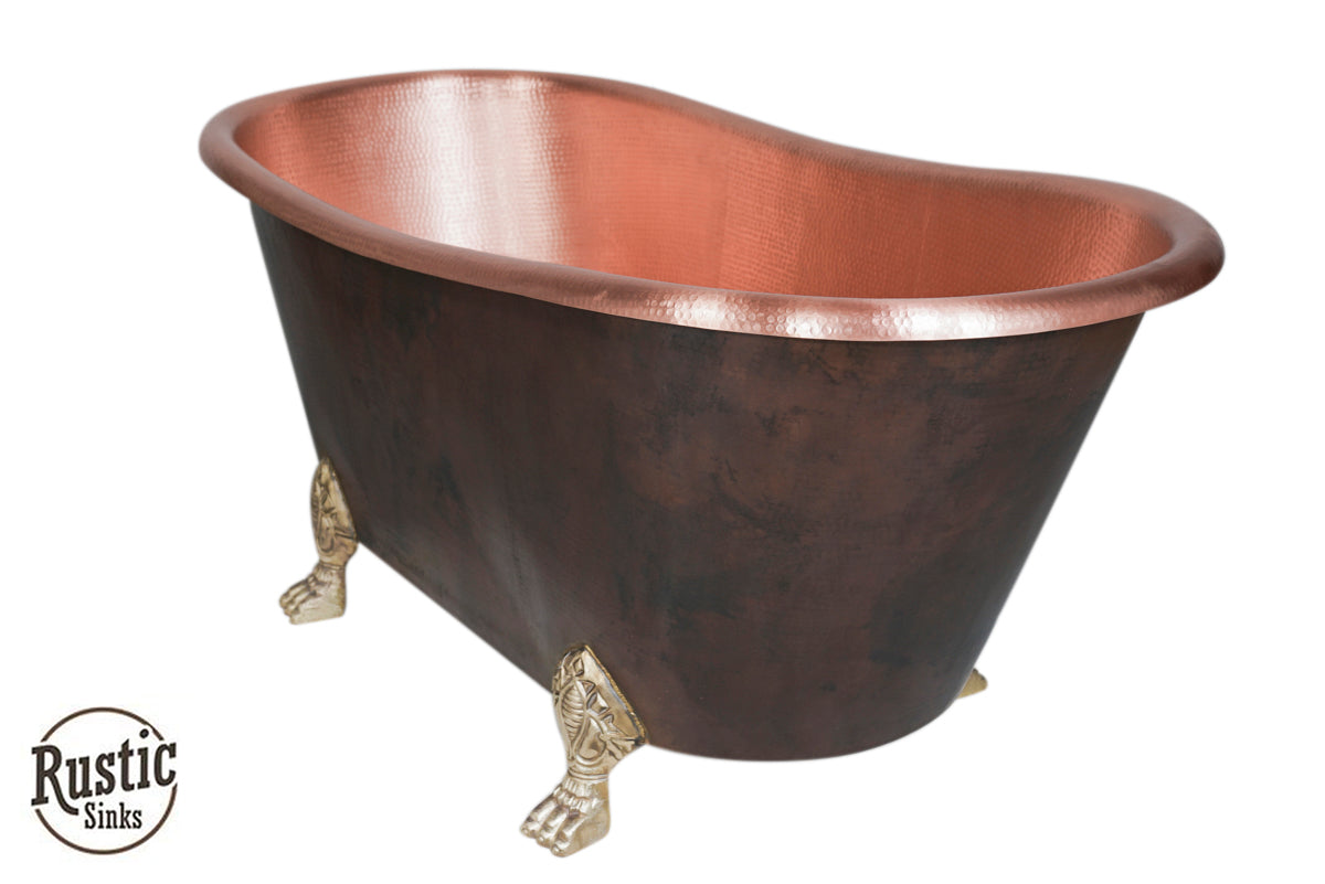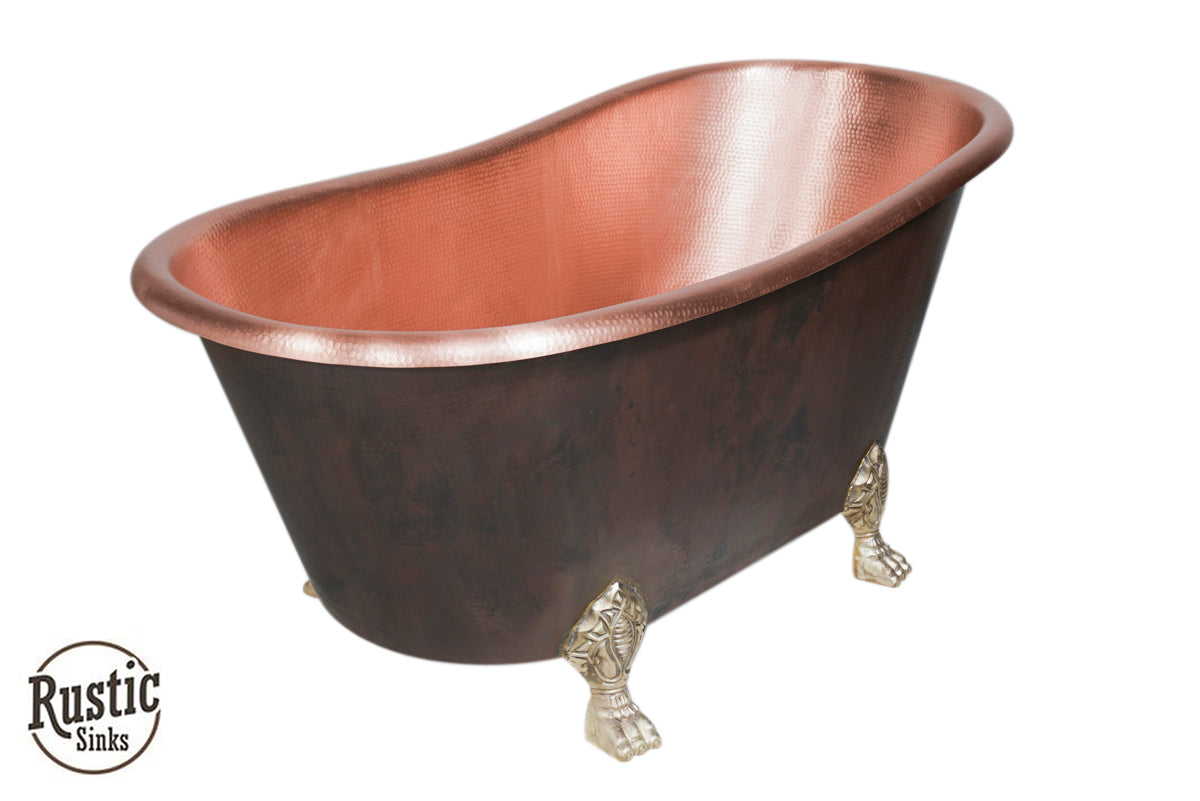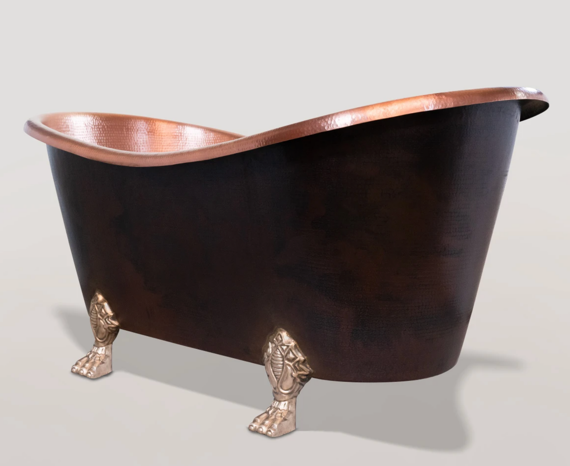 This Slipper Copper Clawfoot Bathtub offers a luxurious way to relax and enjoy a soothing bath. Its beautiful copper finish is paired with intricate detailed clawfeet, creating a timeless piece that is sure to be an elegant statement in any bathroom.